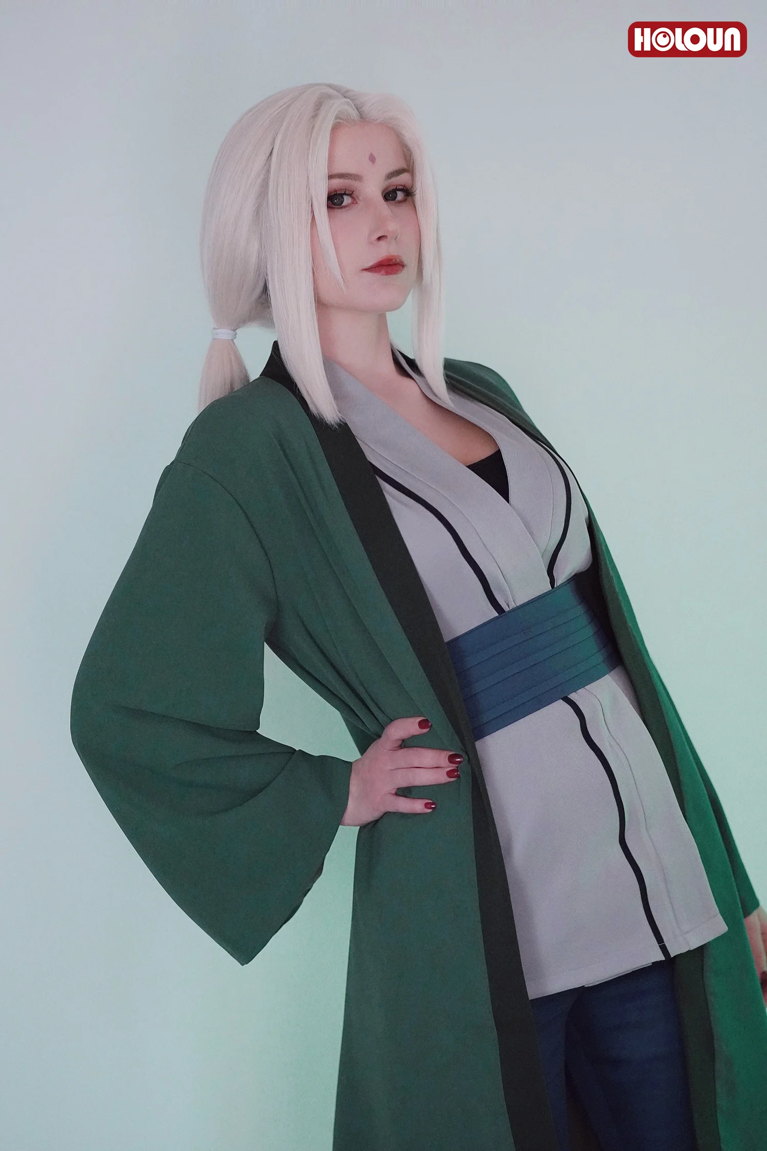 Anime Tsunade Cosplay Costume – Naruto Embroidery Haori Top Pants Belt Outfit – Halloween Costume